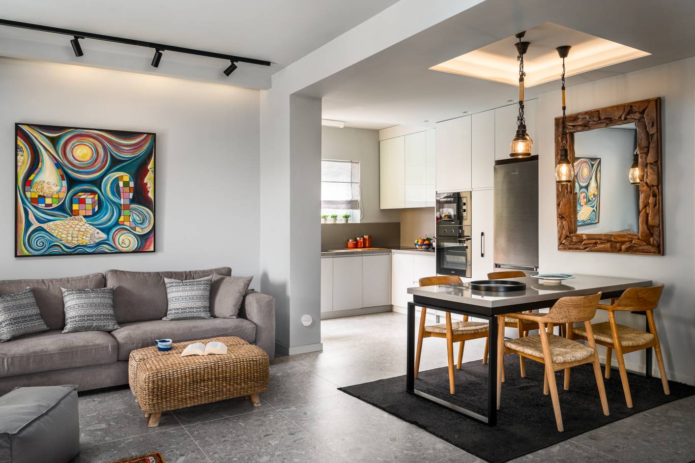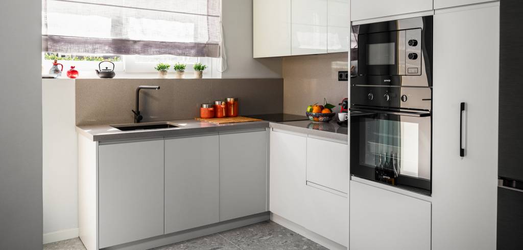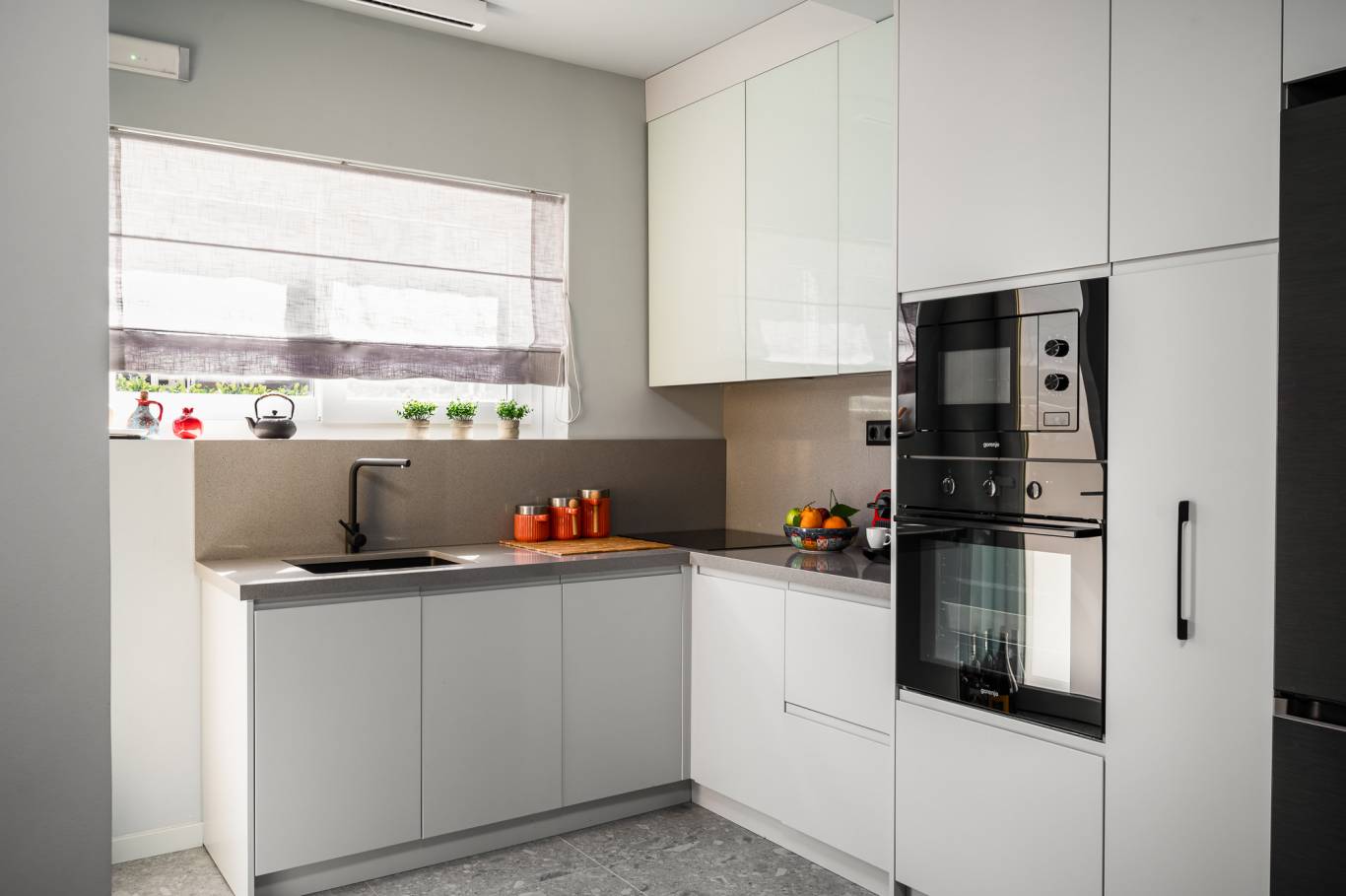 Voll ausgestattete Küche mit Mikrowellenherd, Backofen, Kühlschrank, Geschirrspüler und Nespresso-Maschine