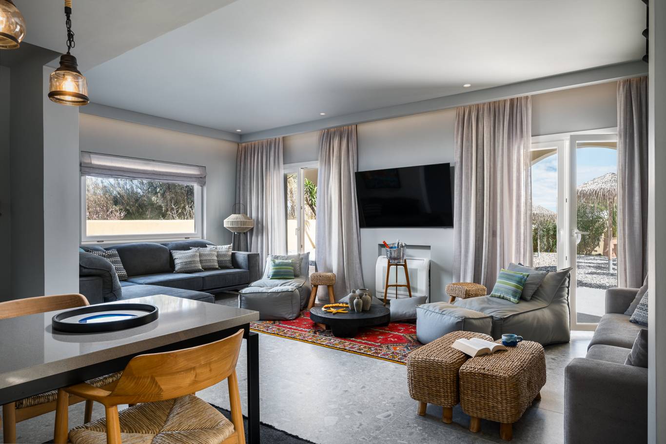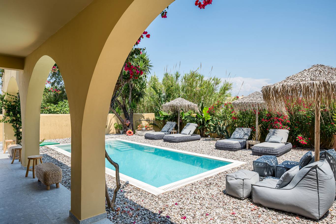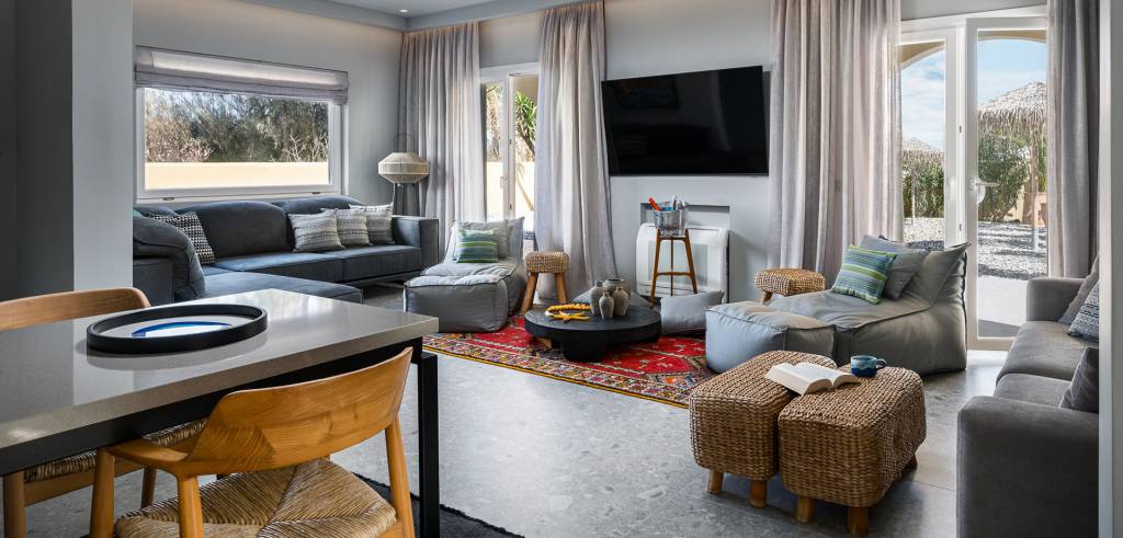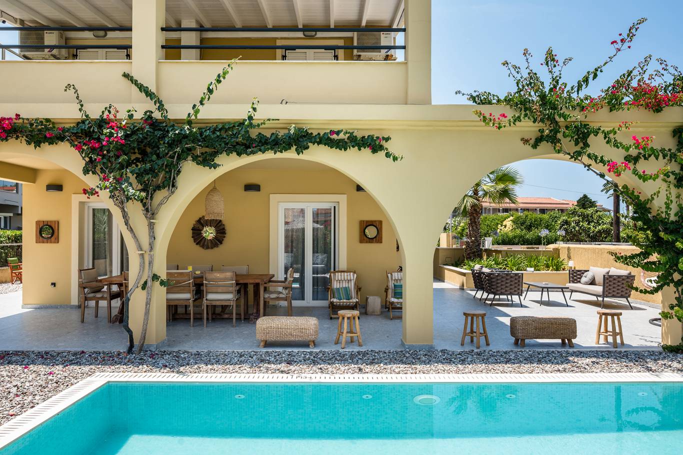 Entdecken Sie die ultimative Mischung aus Luxus, Privatsphäre und Komfort in unserer Private Pool Villa im Acharavi Beach Hotel. Dieser exklusive Rückzugsort bietet Platz für bis zu sechs Erwachsene und ein Kind und verfügt über drei elegant eingerichtete Schlafzimmer, die jeweils mit einem Mini-Kühlschrank und einem Flachbildfernseher ausgestattet sind. Mit drei modernen Badezimmern, einer voll ausgestatteten Küche mit Essbereich und einem geräumigen Wohnbereich sorgt die Villa für einen reibungslosen und entspannten Aufenthalt. Genießen Sie den privaten Swimmingpool, den Grillplatz oder die möblierte Terrasse oder den Balkon nur wenige Schritte vom Meer entfernt. Jedes Detail wurde für Ihren Komfort und Ihre Bequemlichkeit entworfen, was diese Villa zum perfekten Zufluchtsort für Familien oder Gruppen macht, die raffinierte Gastfreundschaft in Meeresnähe suchen.