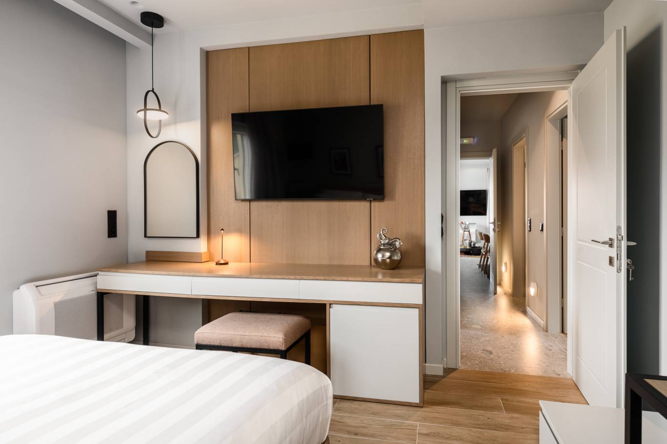 Drei separate Schlafzimmer (jeweils mit Minikühlschrank und Flachbildfernseher)